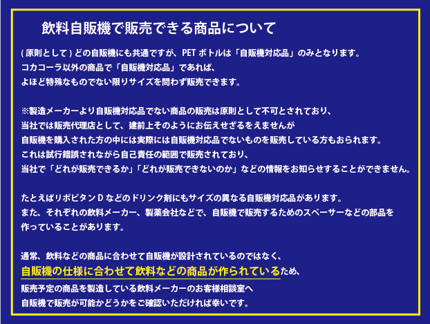 どうしても販売する際には「自販機用のドリンク剤」をご利用ください。